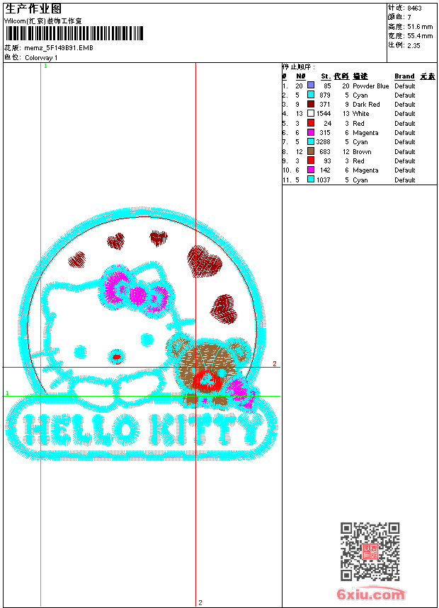 - emb花版参数: 大小:83.50 KB / 尺寸:55*52[毫米] / 针数:8463针 / 线色:7 / 格式:emb / 版本:9