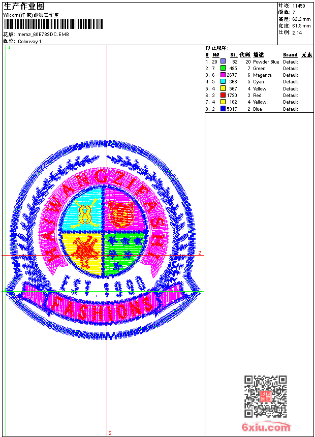 - emb花版参数: 大小:94.50 KB / 尺寸:62*62[毫米] / 针数:11450针 / 线色:7 / 格式:emb / 版本:9