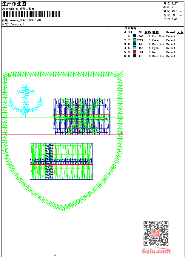- emb花版参数: 大小:99.00 KB / 尺寸:39*45[毫米] / 针数:2237针 / 线色:4 / 格式:emb / 版本:9