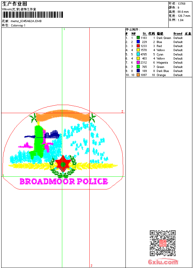 - 版带文件需绣花软件方可打开,可配色打印导出各种格式或直接上机绣。如无绣花软件可下载1:1模拟效果图。