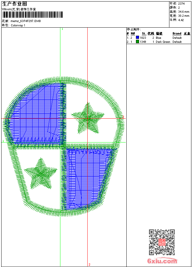 - emb花版参数: 大小:93.50 KB / 尺寸:30*35[毫米] / 针数:2374针 / 线色:2 / 格式:emb / 版本:9