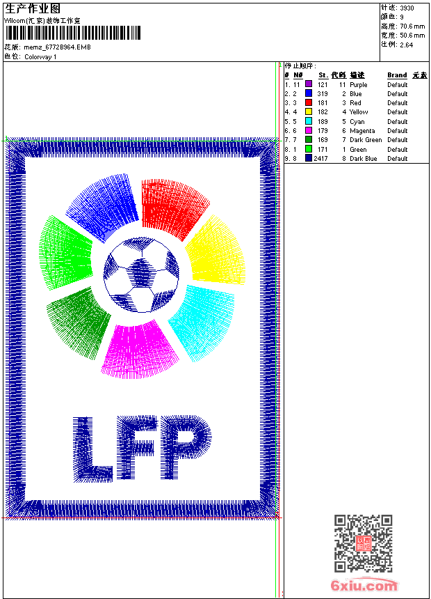 - emb花版参数: 大小:34.00 KB / 尺寸:51*71[毫米] / 针数:3930针 / 线色:9 / 格式:emb / 版本:9
