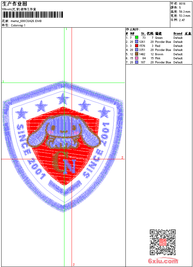 - 版带文件需绣花软件方可打开,可配色打印导出各种格式或直接上机绣。如无绣花软件可下载1:1模拟效果图。
