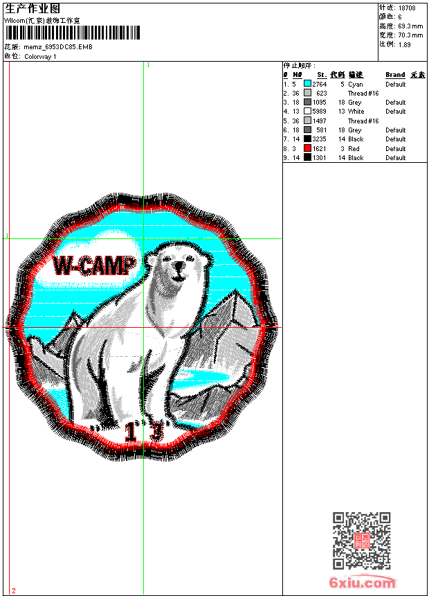 - emb花版参数: 大小:117.50 KB / 尺寸:70*69[毫米] / 针数:18708针 / 线色:6 / 格式:emb / 版本:9