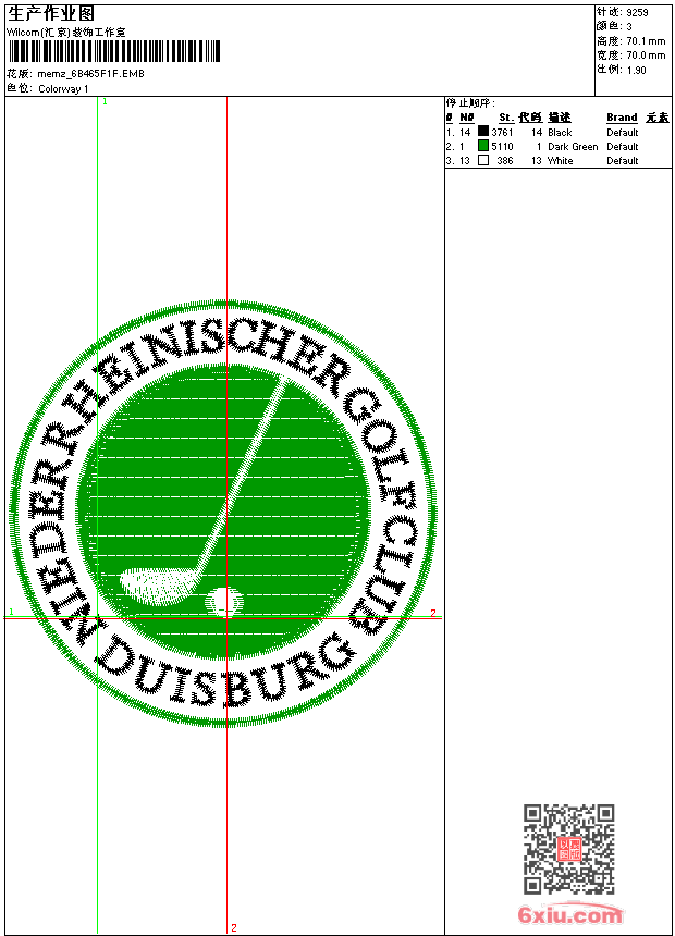 - emb花版参数: 大小:59.50 KB / 尺寸:70*70[毫米] / 针数:9259针 / 线色:3 / 格式:emb / 版本:9