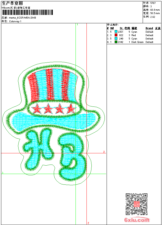 - 版带文件需绣花软件方可打开,可配色打印导出各种格式或直接上机绣。如无绣花软件可下载1:1模拟效果图。