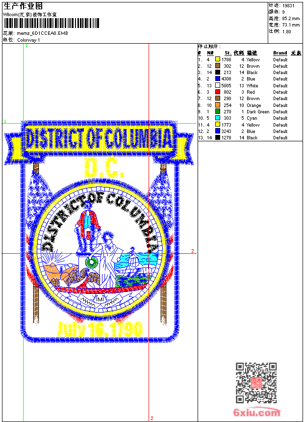 - emb花版参数: 大小:148.00 KB / 尺寸:73*85[毫米] / 针数:19831针 / 线色:9 / 格式:emb / 版本:9