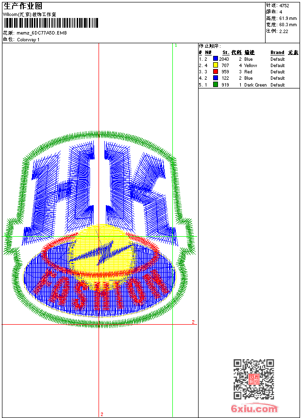 - emb花版参数: 大小:37.50 KB / 尺寸:60*62[毫米] / 针数:4752针 / 线色:4 / 格式:emb / 版本:9