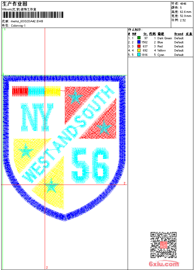 - emb花版参数: 大小:28.50 KB / 尺寸:53*63[毫米] / 针数:4846针 / 线色:5 / 格式:emb / 版本:9