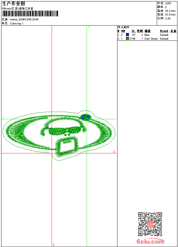 - emb花版参数: 大小:59.00 KB / 尺寸:64*28[毫米] / 针数:2265针 / 线色:2 / 格式:emb / 版本:9