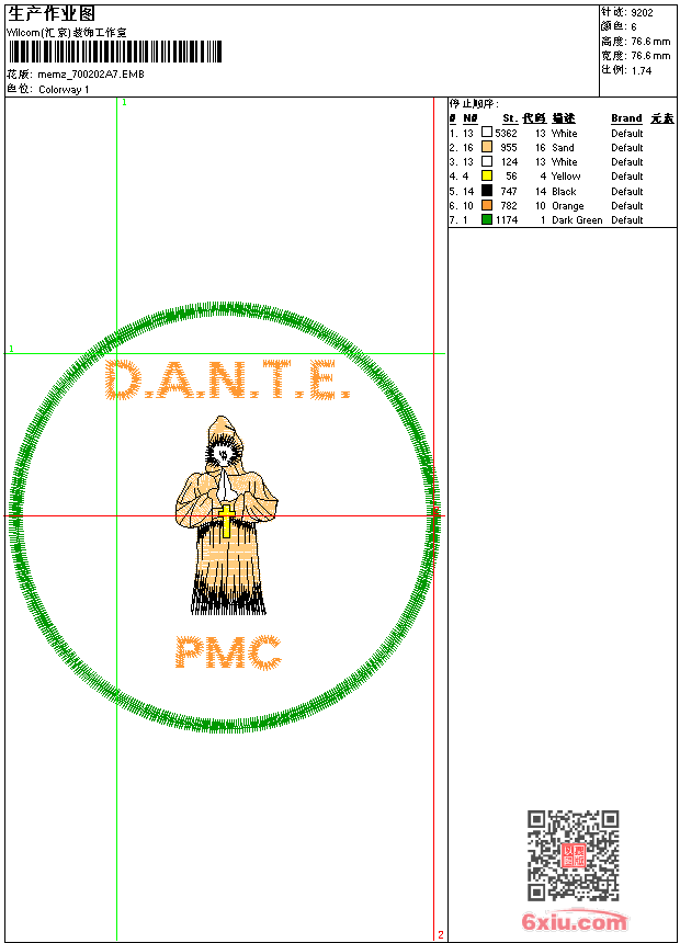 - 版带文件需绣花软件方可打开,可配色打印导出各种格式或直接上机绣。如无绣花软件可下载1:1模拟效果图。