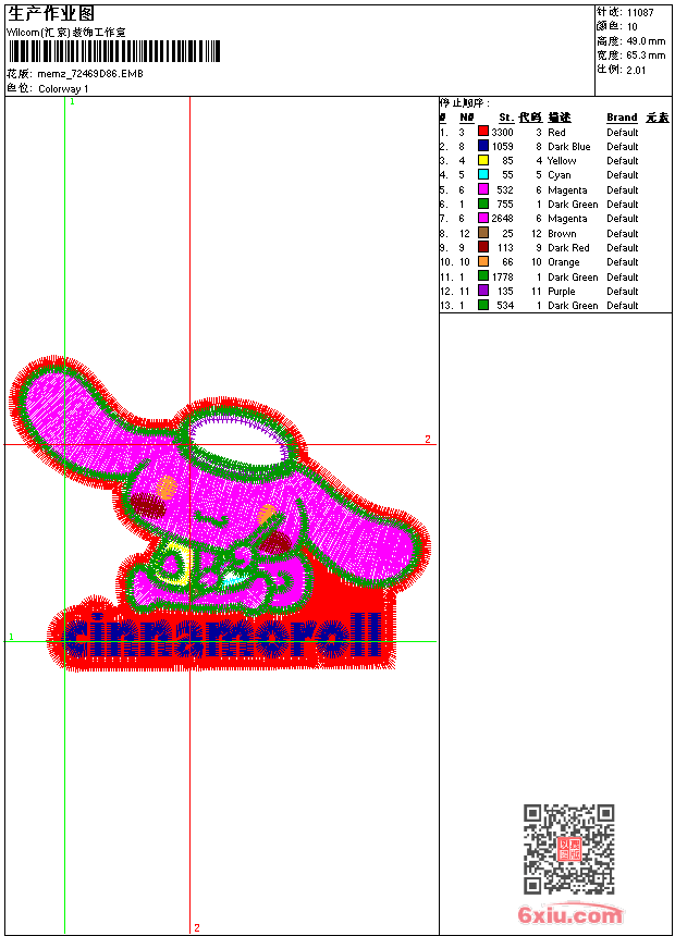 - 版带文件需绣花软件方可打开,可配色打印导出各种格式或直接上机绣。如无绣花软件可下载1:1模拟效果图。