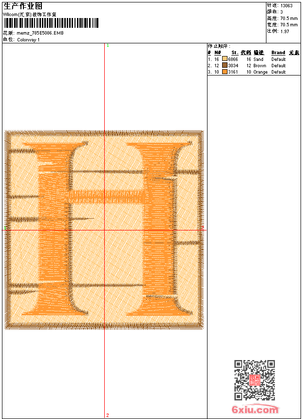 - emb花版参数: 大小:265.00 KB / 尺寸:71*70[毫米] / 针数:13065针 / 线色:3 / 格式:emb / 版本:9
