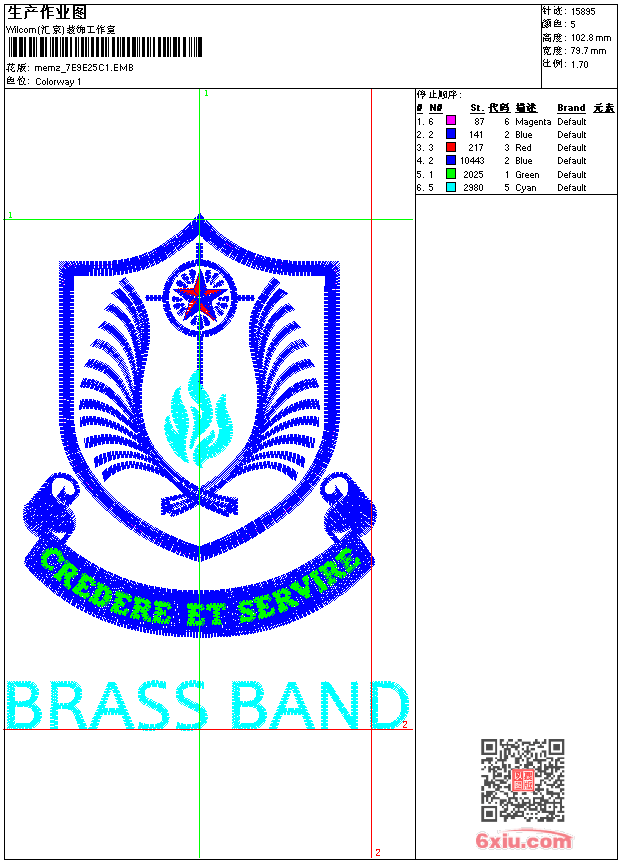 - emb花版参数: 大小:86.50 KB / 尺寸:80*103[毫米] / 针数:15895针 / 线色:5 / 格式:emb / 版本:9
