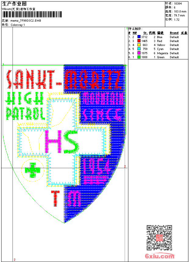 - emb花版参数: 大小:441.00 KB / 尺寸:80*103[毫米] / 针数:10384针 / 线色:6 / 格式:emb / 版本:9