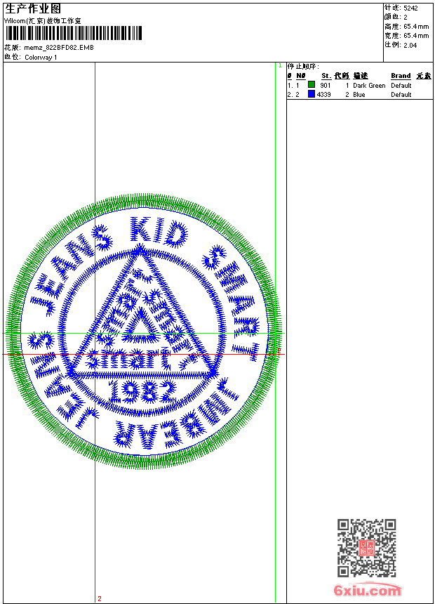 - emb花版参数: 大小:47.50 KB / 尺寸:65*65[毫米] / 针数:5242针 / 线色:2 / 格式:emb / 版本:9
