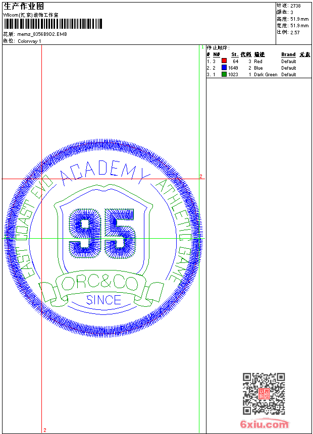 - emb花版参数: 大小:192.50 KB / 尺寸:52*52[毫米] / 针数:2738针 / 线色:3 / 格式:emb / 版本:9