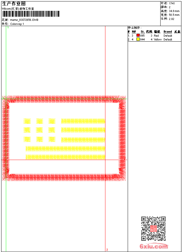 - emb花版参数: 大小:171.50 KB / 尺寸:51*35[毫米] / 针数:1741针 / 线色:2 / 格式:emb / 版本:9