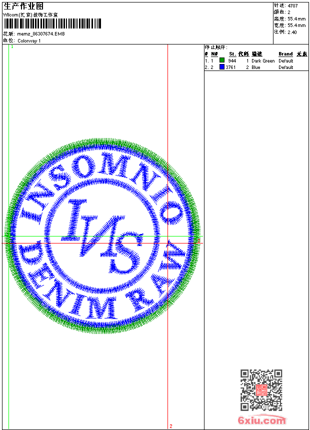 - emb花版参数: 大小:41.50 KB / 尺寸:55*55[毫米] / 针数:4707针 / 线色:2 / 格式:emb / 版本:9
