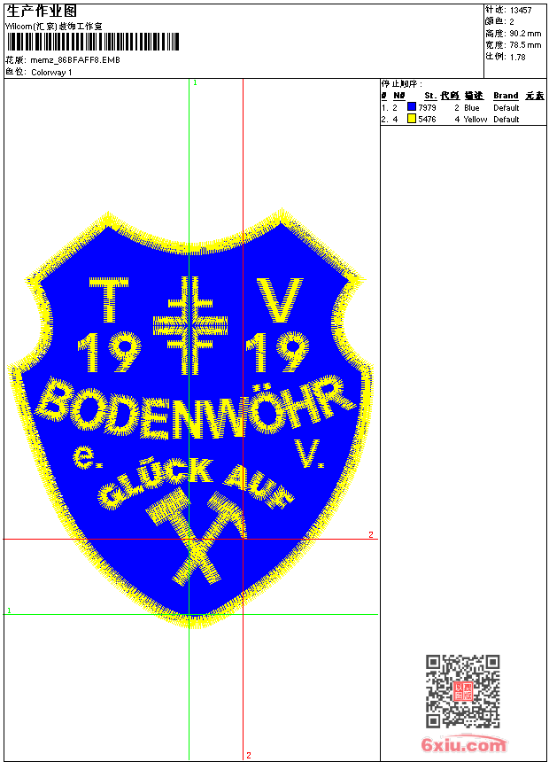 - emb花版参数: 大小:44.00 KB / 尺寸:79*90[毫米] / 针数:13457针 / 线色:2 / 格式:emb / 版本:9
