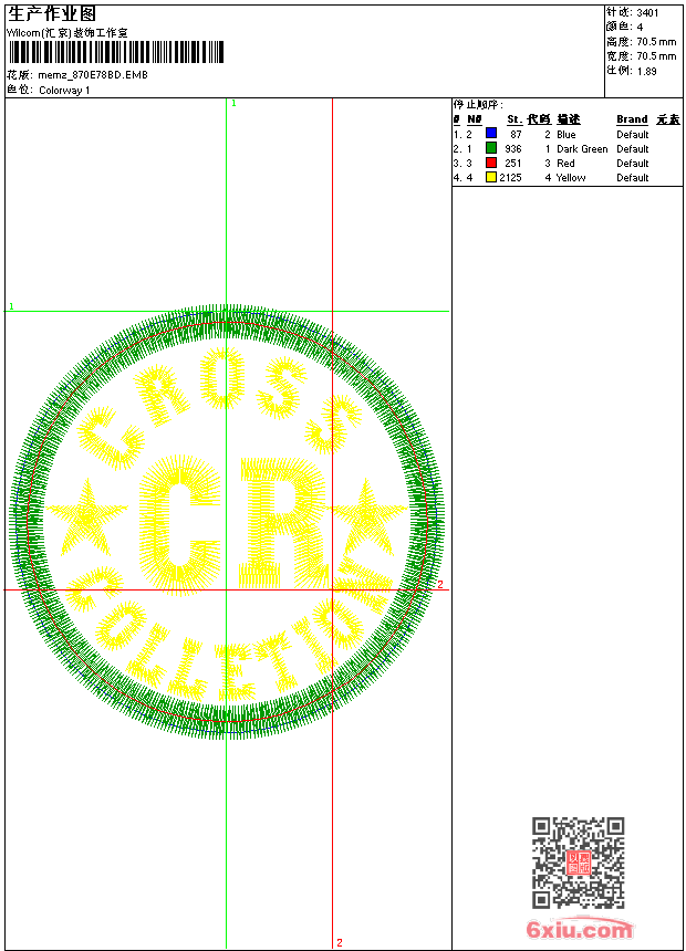 - emb花版参数: 大小:429.50 KB / 尺寸:70*70[毫米] / 针数:3401针 / 线色:4 / 格式:emb / 版本:9