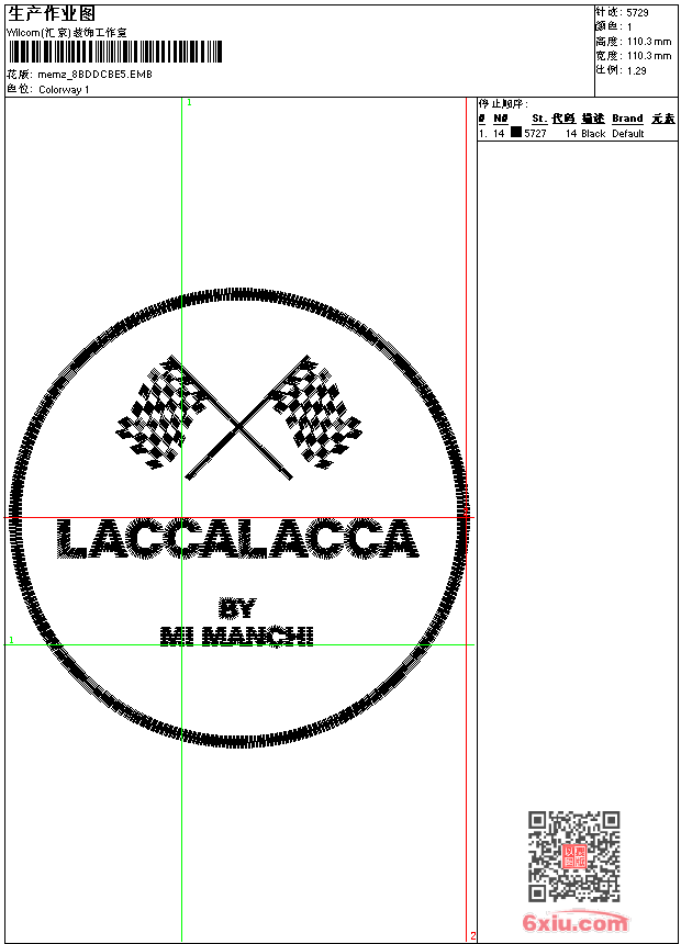 - emb花版参数: 大小:35.50 KB / 尺寸:110*110[毫米] / 针数:5729针 / 线色:1 / 格式:emb / 版本:9
