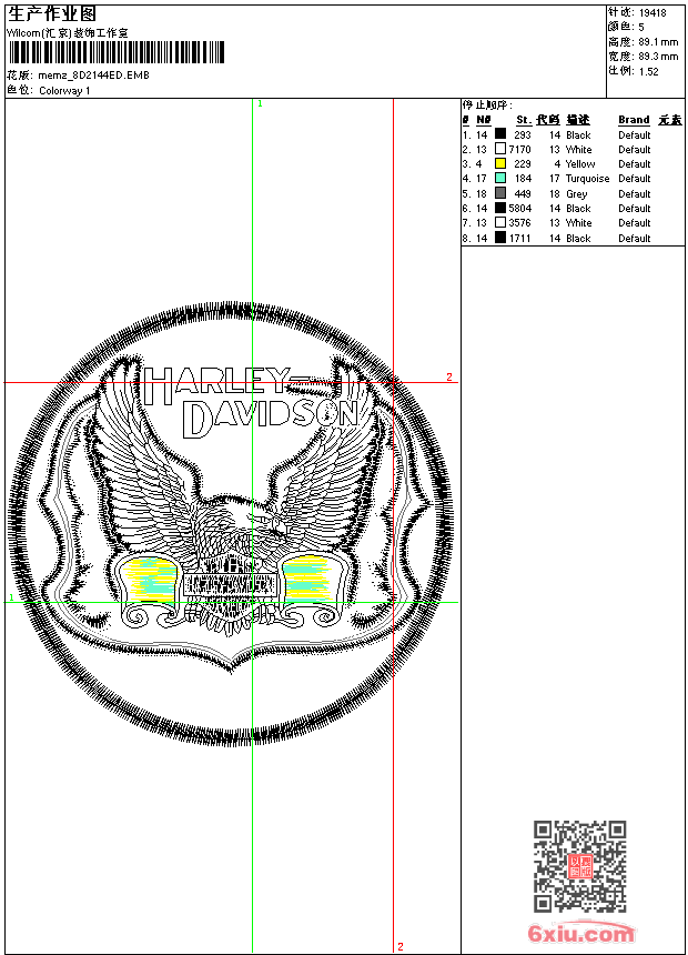 - 版带文件需绣花软件方可打开,可配色打印导出各种格式或直接上机绣。如无绣花软件可下载1:1模拟效果图。