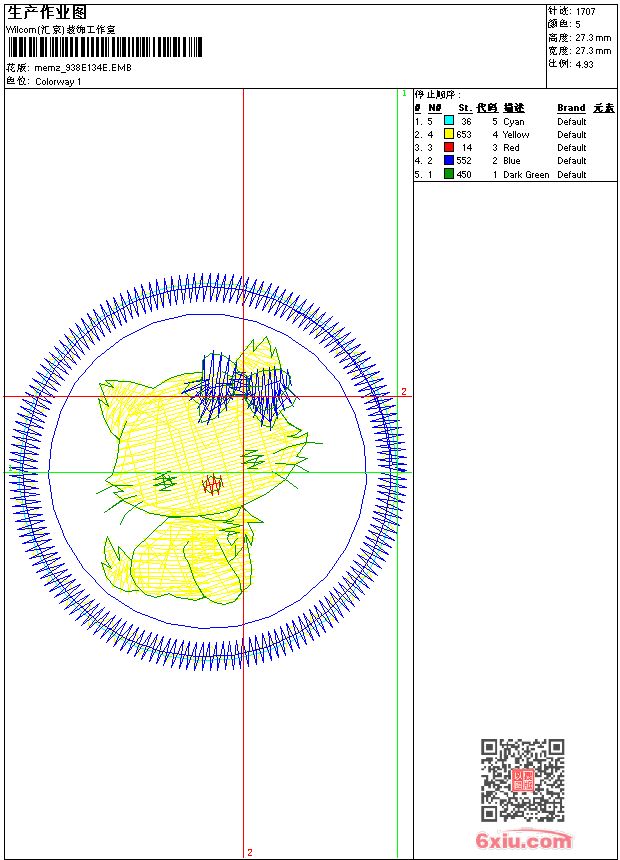 - emb花版参数: 大小:70.50 KB / 尺寸:27*27[毫米] / 针数:1707针 / 线色:5 / 格式:emb / 版本:9