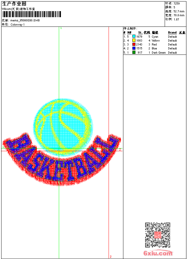- emb花版参数: 大小:199.50 KB / 尺寸:71*53[毫米] / 针数:7259针 / 线色:5 / 格式:emb / 版本:9