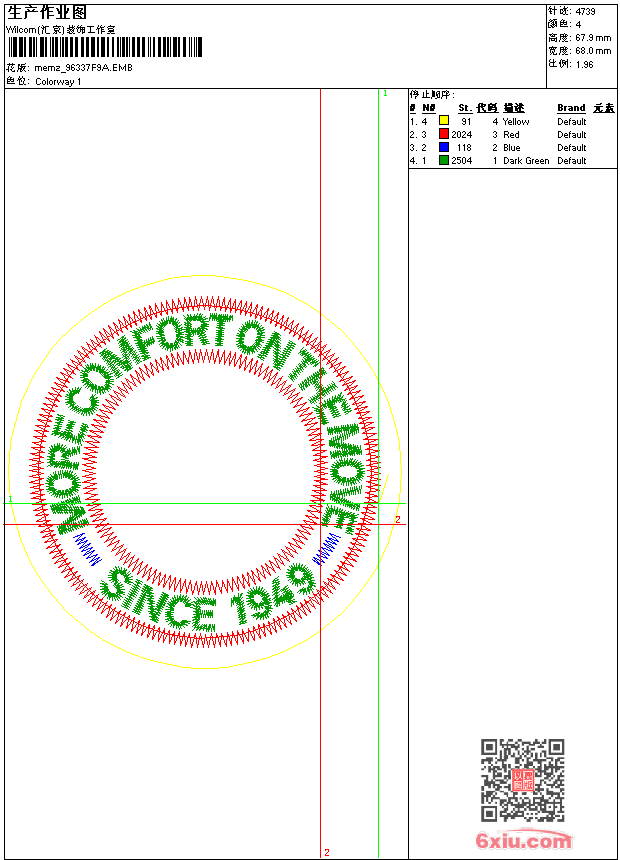 - emb花版参数: 大小:41.50 KB / 尺寸:68*68[毫米] / 针数:4739针 / 线色:4 / 格式:emb / 版本:9