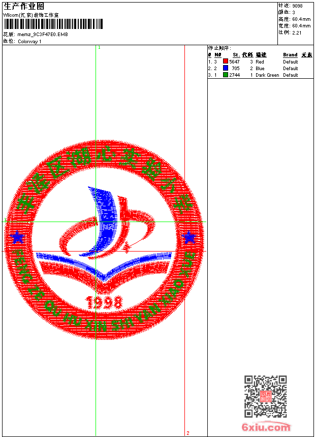 - emb花版参数: 大小:3.84 MB / 尺寸:60*60[毫米] / 针数:9098针 / 线色:3 / 格式:emb / 版本:9