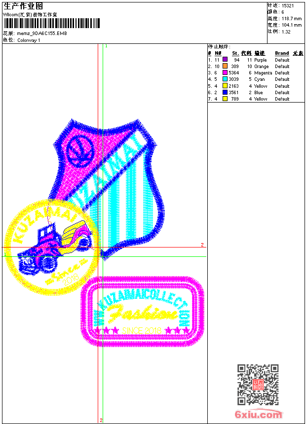 - 版带文件需绣花软件方可打开,可配色打印导出各种格式或直接上机绣。如无绣花软件可下载1:1模拟效果图。