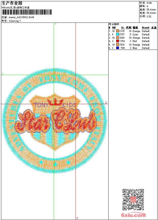 - emb花版参数: 大小:90.50 KB / 尺寸:55*55[毫米] / 针数:9196针 / 线色:4 / 格式:emb / 版本:9