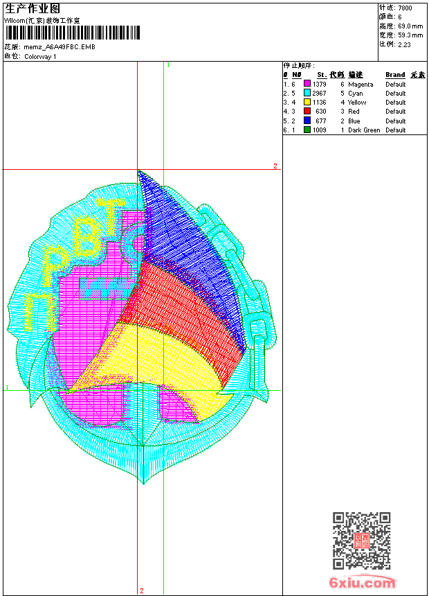 - emb花版参数: 大小:51.50 KB / 尺寸:59*69[毫米] / 针数:7800针 / 线色:6 / 格式:emb / 版本:9