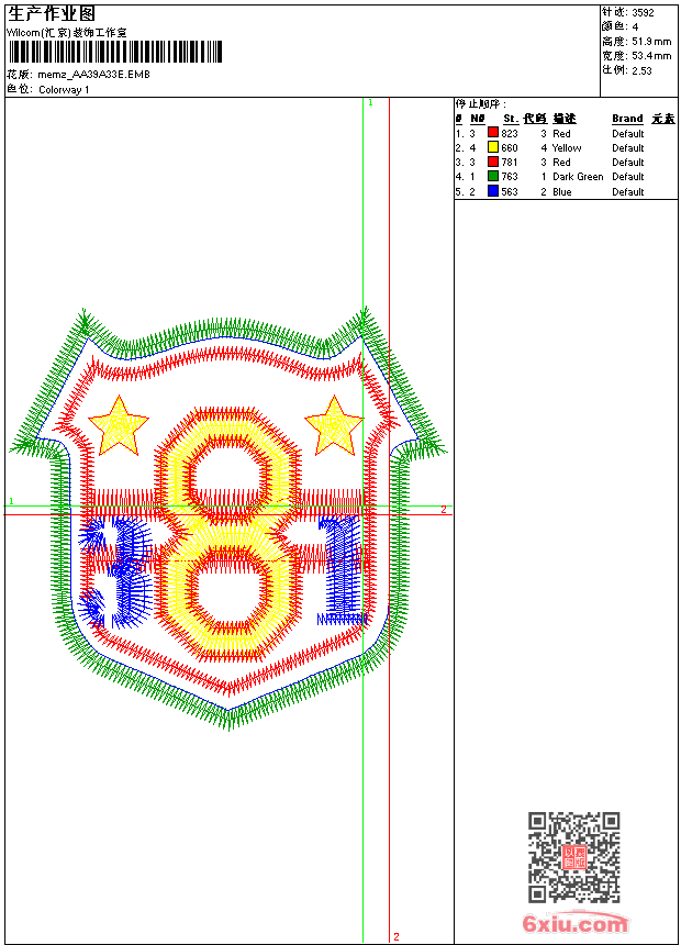 - emb花版参数: 大小:37.00 KB / 尺寸:53*52[毫米] / 针数:3592针 / 线色:4 / 格式:emb / 版本:9