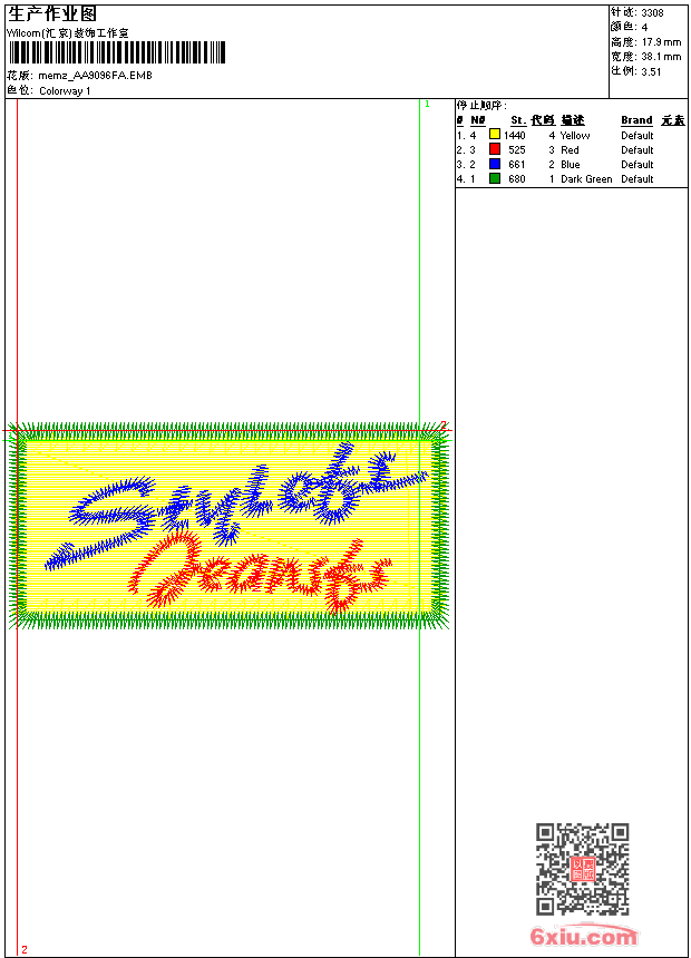 - emb花版参数: 大小:30.00 KB / 尺寸:38*18[毫米] / 针数:3308针 / 线色:4 / 格式:emb / 版本:9