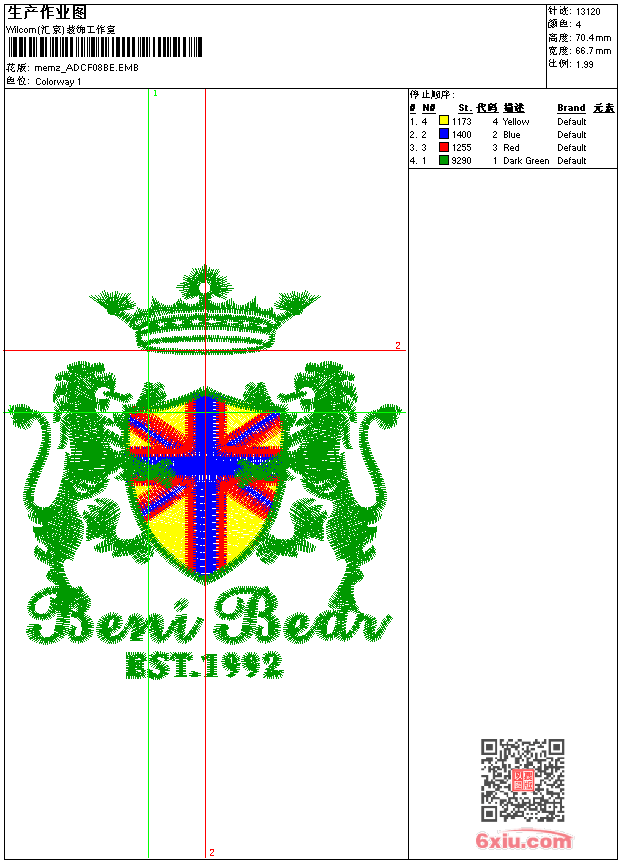 - 版带文件需绣花软件方可打开,可配色打印导出各种格式或直接上机绣。如无绣花软件可下载1:1模拟效果图。