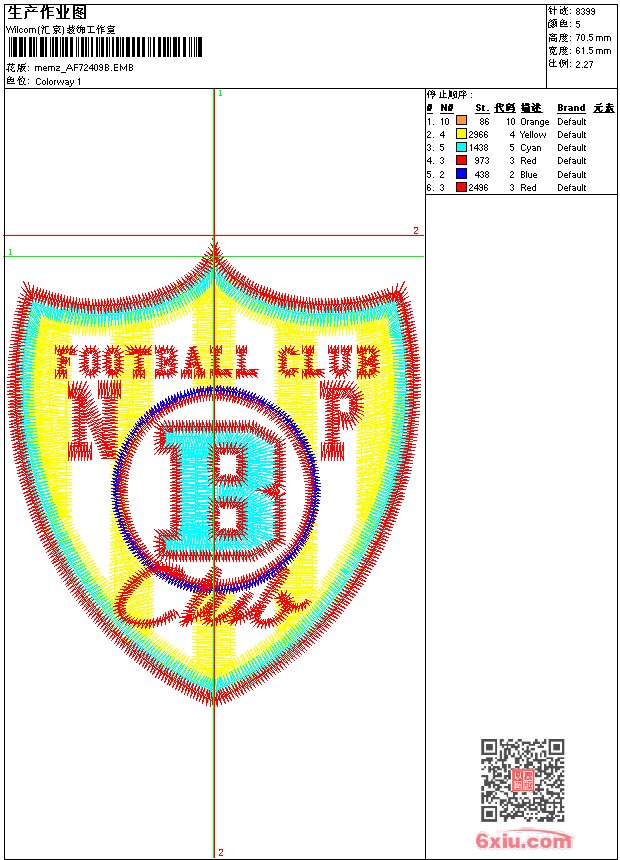 - emb花版参数: 大小:66.00 KB / 尺寸:62*71[毫米] / 针数:8399针 / 线色:5 / 格式:emb / 版本:9