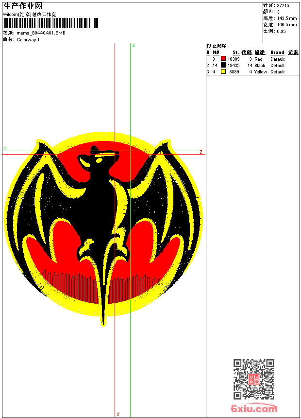 - emb花版参数: 大小:113.00 KB / 尺寸:147*144[毫米] / 针数:37715针 / 线色:3 / 格式:emb / 版本:9
