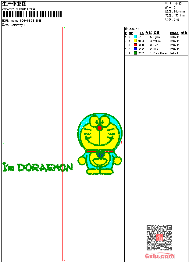 - emb花版参数: 大小:212.50 KB / 尺寸:155*80[毫米] / 针数:14435针 / 线色:5 / 格式:emb / 版本:9