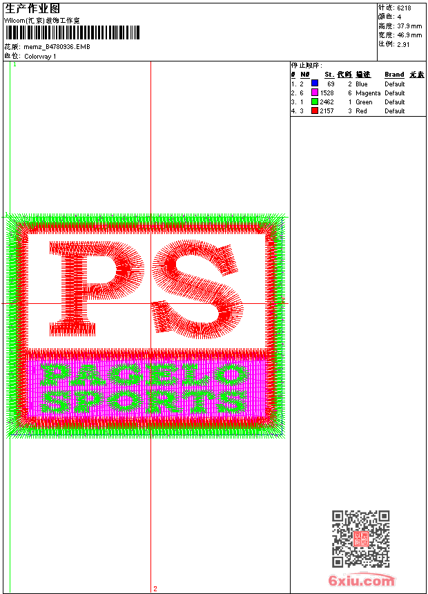 - emb花版参数: 大小:33.50 KB / 尺寸:47*38[毫米] / 针数:6218针 / 线色:4 / 格式:emb / 版本:9