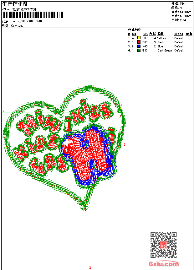 - emb花版参数: 大小:64.00 KB / 尺寸:50*51[毫米] / 针数:5864针 / 线色:4 / 格式:emb / 版本:9
