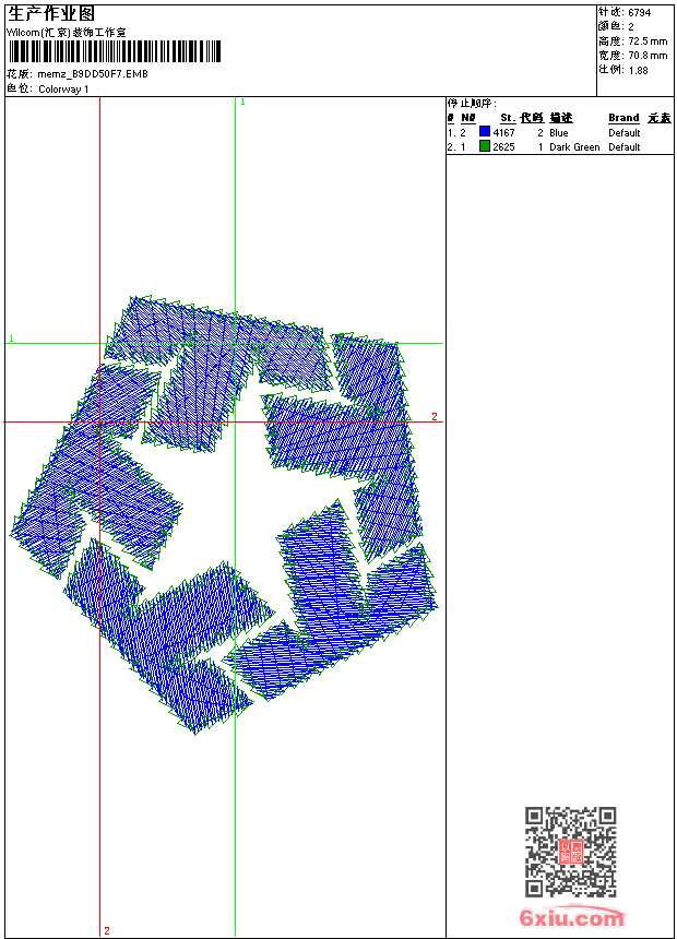 - emb花版参数: 大小:60.00 KB / 尺寸:71*73[毫米] / 针数:6794针 / 线色:2 / 格式:emb / 版本:9