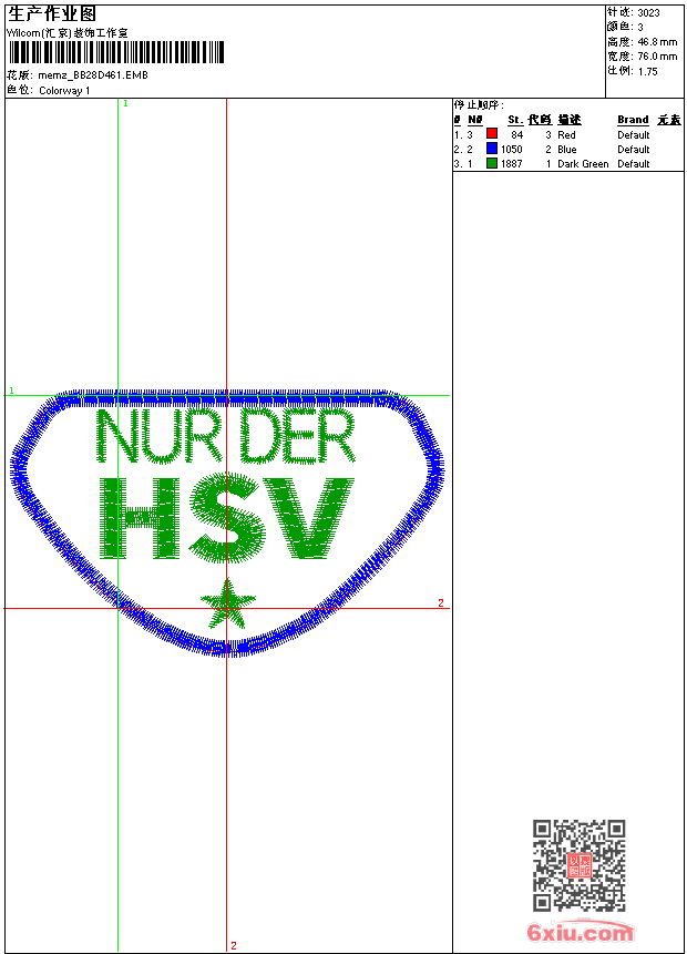 - emb花版参数: 大小:31.50 KB / 尺寸:76*47[毫米] / 针数:3023针 / 线色:3 / 格式:emb / 版本:9