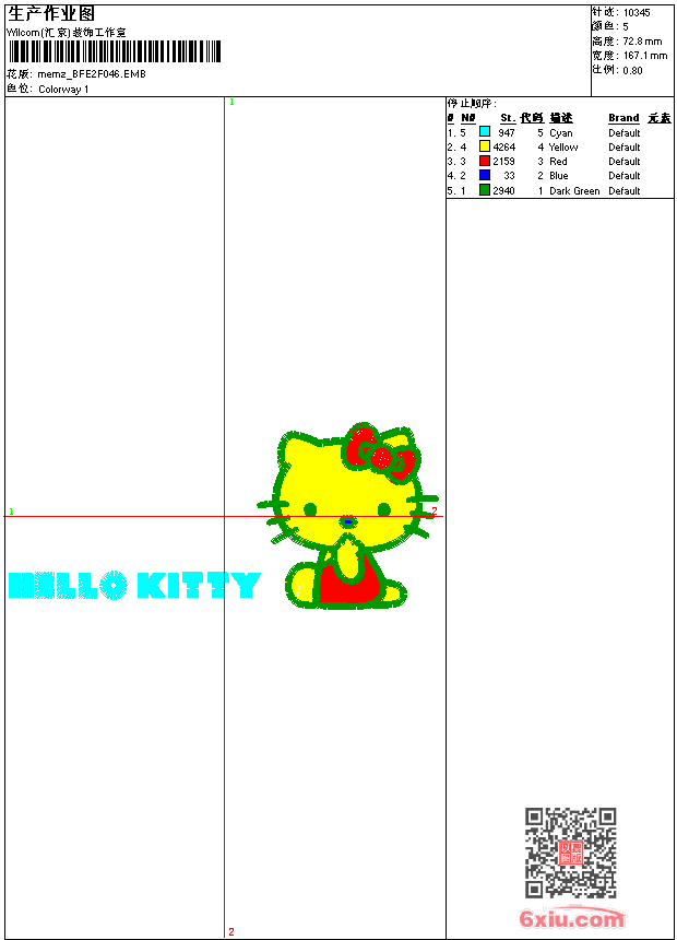 - emb花版参数: 大小:174.00 KB / 尺寸:167*73[毫米] / 针数:10345针 / 线色:5 / 格式:emb / 版本:9
