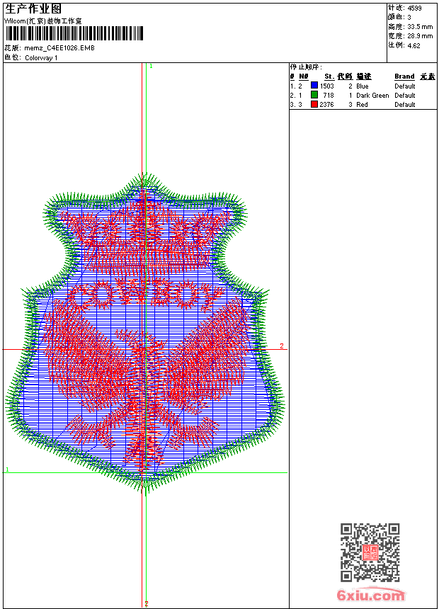 - emb花版参数: 大小:44.50 KB / 尺寸:29*33[毫米] / 针数:4599针 / 线色:3 / 格式:emb / 版本:9