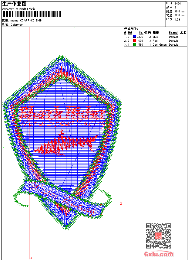 - emb花版参数: 大小:47.50 KB / 尺寸:33*49[毫米] / 针数:6404针 / 线色:3 / 格式:emb / 版本:9