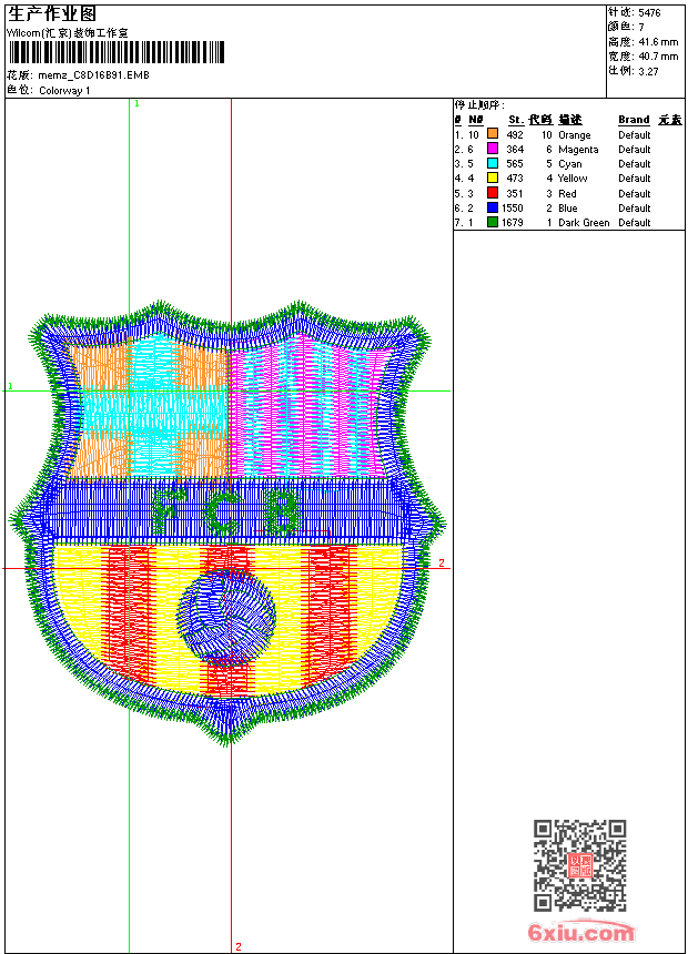 - emb花版参数: 大小:48.00 KB / 尺寸:41*42[毫米] / 针数:5476针 / 线色:7 / 格式:emb / 版本:9