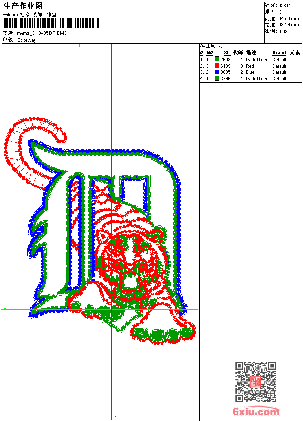 - emb花版参数: 大小:93.00 KB / 尺寸:123*145[毫米] / 针数:15611针 / 线色:3 / 格式:emb / 版本:9