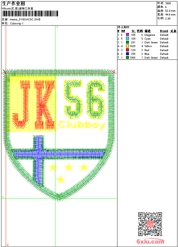 - emb花版参数: 大小:37.00 KB / 尺寸:45*53[毫米] / 针数:3800针 / 线色:6 / 格式:emb / 版本:9